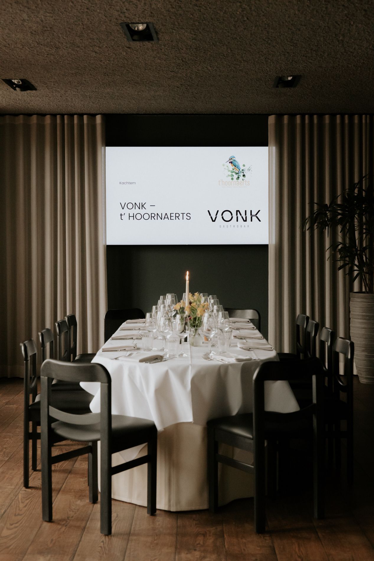 In de zomer van 2020 kreeg t’ Hoornaerts gezelschap van Vonk, onze gastrobar in een oxiderode serre die tegen de flanken van de feestzaal werd gebouwd. Groenten worden er niet geteeld, maar wel geëerd in de eigentijdse vuurkeuken van chef Bart Hoornaert. Streekgebonden seizoensproducten worden er gebakken, gegrild en gegaard in de houtskooloven en verwerkt in gerechten die tegelijk verfijnd en nonchalant, herkenbaar en verrassend zijn. Je krijgt ze tijdens je lunch of diner geserveerd in de informele sfeer van een serre met hoge bomen, een ‘smoking hot’ interieur en een gezellige sfeer.